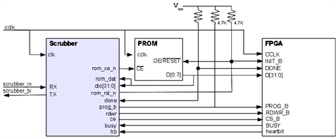 Scrubbing is the process of removing errors from a memory's content by rewriting it periodically with correct values. Scrubbing is used in conjunction with Triple Mode Redundancy (TMR) to mitigate the effects of radiation in SRAM-based FPGAs. Micro-RDC's programmable scrubber for FPGAs is the first industry available scrubber flexible enough to support a wide range of FPGA families and different implementation options (Radiation-Hardened-By-Design (RHBD) Structured ASIC (S-ASIC) or RTL for implementation in any reconfigurable device). RTL can be implemented in any generic FPGA.